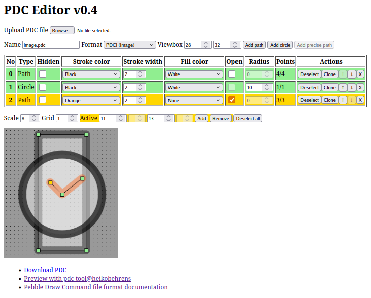 I’m currently trying to solve a complicated issue with converting a hand-drawn analogue hand from SVG (or PNG) to PDC. If I can’t find good tooling for it from the community, I might have to create my own.
