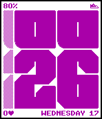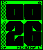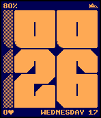 Small font for text areas can support up to 32 icons with height of 7px and vary width. Besides basic stuff like icon for disconnected bluetooth, silent mode or charging battery I’m thinking of something more fun.