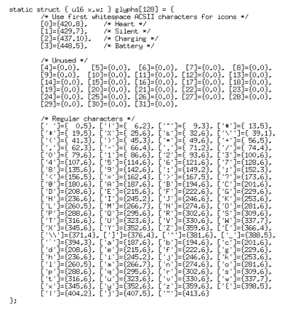 I have this array with mapping of coordinates to font atlas for each ASCII character: